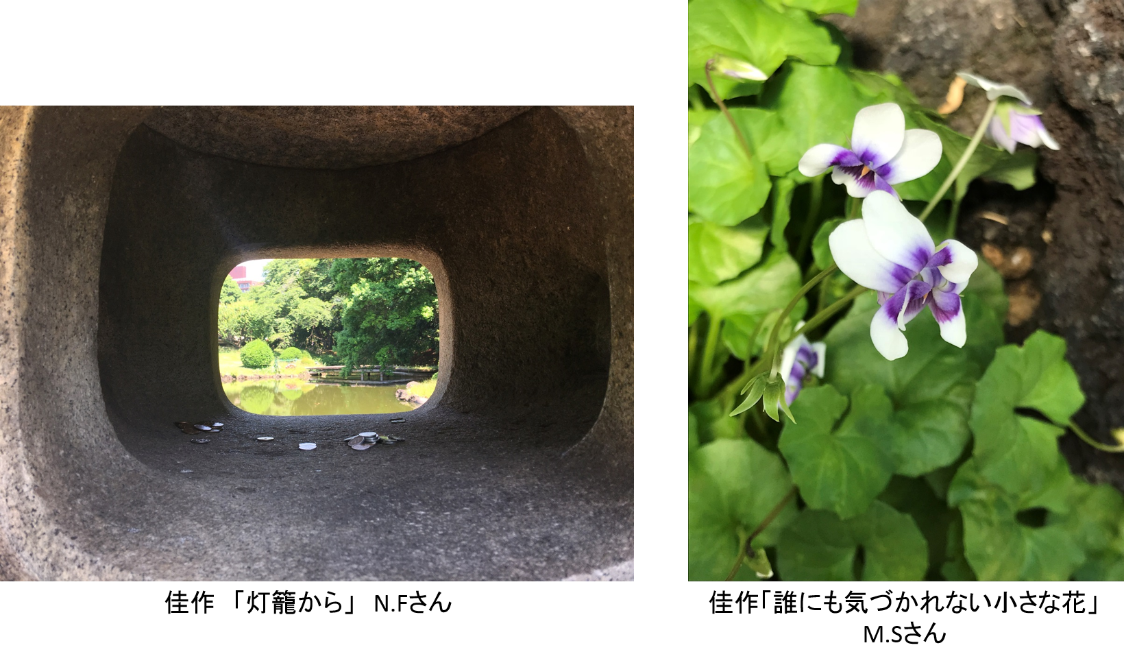 僕にとって二回目のフォトコンテストで、今回は新宿御苑でした。前回よりもスケールがかなり大きくなっており、歩くだけでも体力のない僕にとっては一苦労でした。前回の場所が橋や建物等との対比を楽しむのに対し、今回の新宿御苑は自然や素材そのものを楽しみやすいように感じました。もちろん、首都圏ということもあり、ビル群との対比を見て楽しむような場所もいくつかありました。何を撮るか決めかねながら歩いていると、ベンチの向こう側にドクダミがたくさん生えていて、白く綺麗だったのを見つけました。スマートフォンでドクダミについて調べると、正式な感じは「毒矯み」と言ういかにもな名前だったり、中国語で「生臭い」という意味だったりで、ろくでもない呼ばれ方ばかりされていてかわいそうだなと思いました。流石にキザったらしい文ばかりある花言葉なら、多少マシなことが書いてあるだろうと思い調べてみると、「白い追憶」と書かれていて、いかにも中学二年生が喜びそうなワードだなと思いましたが、僕は心が中学生から進歩していないので喜びました。